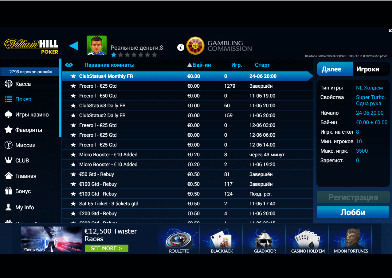 Регистрация на официальном сайте покер-рума Вильям Хилл